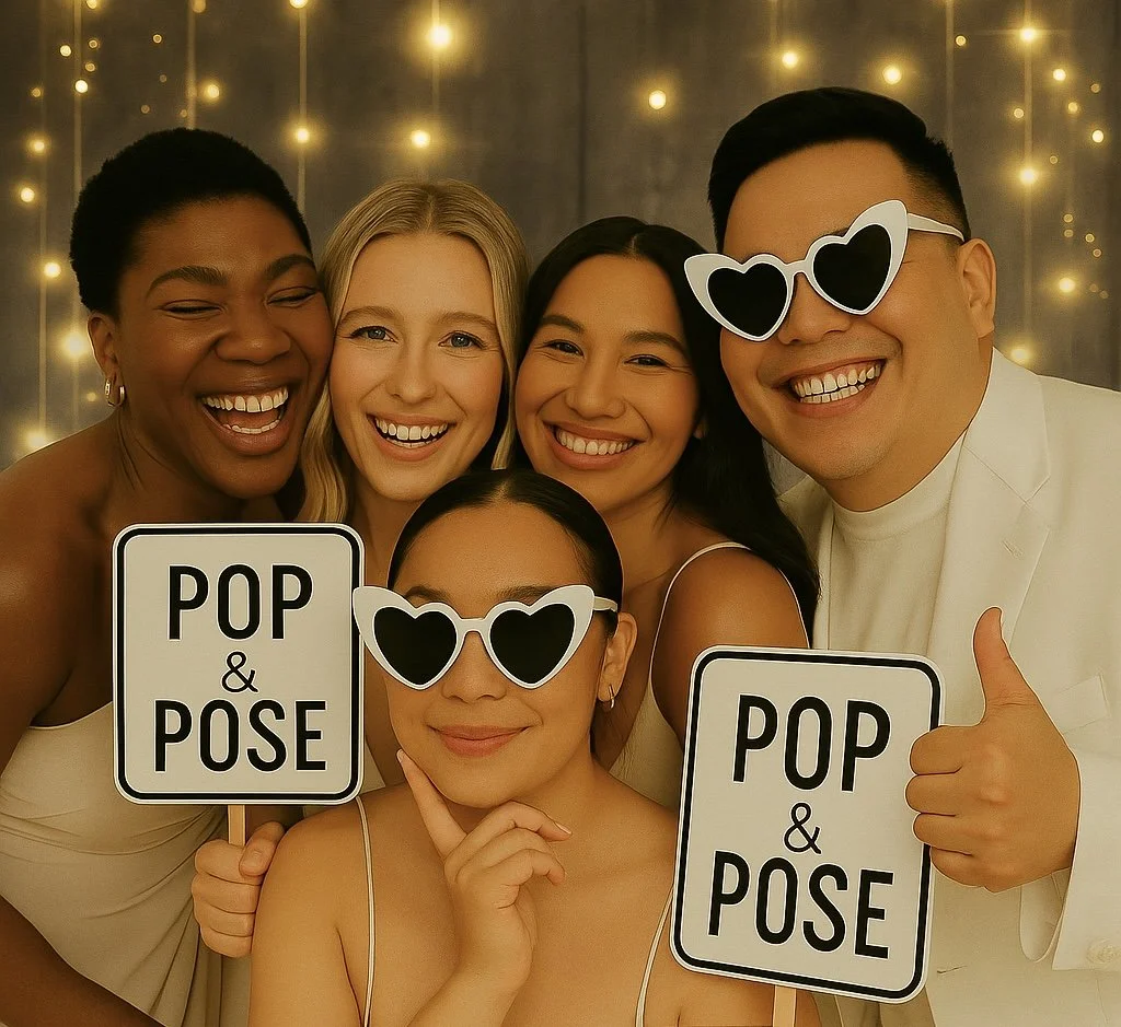 Pop & Pose Photo Booth is a fresh, vibrant mobile photo booth experience created by event-lovers Will & Rosie. We’re passionate about helping you capture joy, laughter, and unforgettable memories — one photo strip at a time.